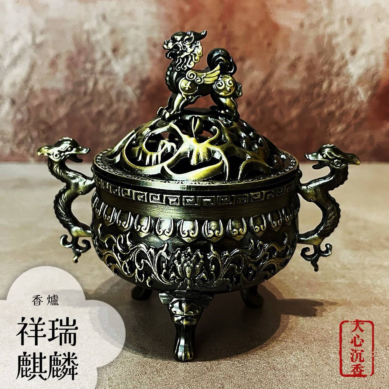 【大心沉香】祥瑞麒麟三足香爐【適用2-4H盤香】【內贈簡易鐵架】【限量優惠$198】
