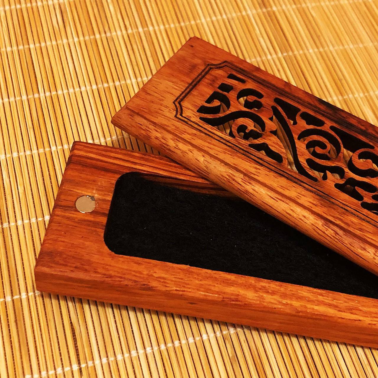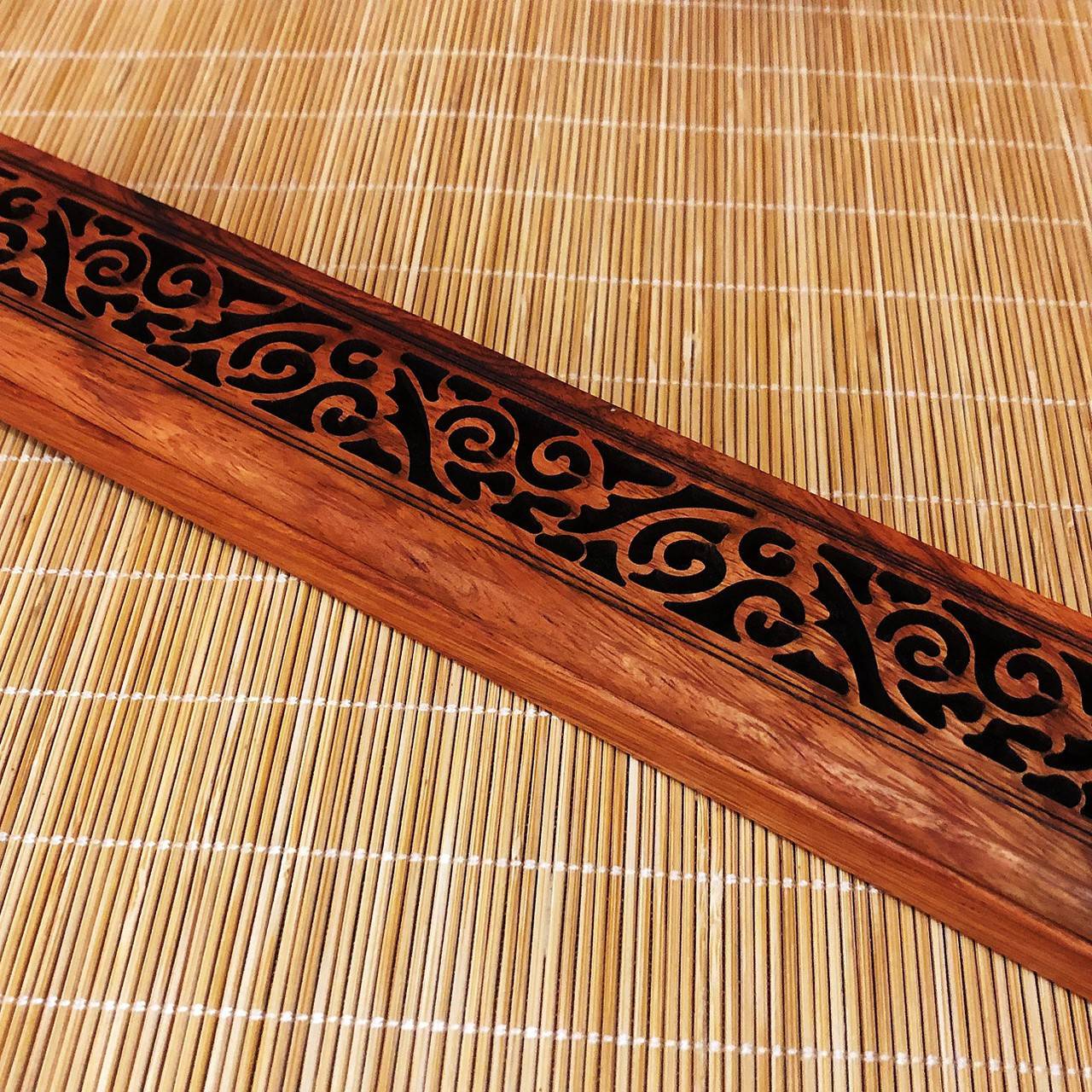 【商品名稱】花梨木/唐草紋木質臥香爐 (內附防火棉1片)